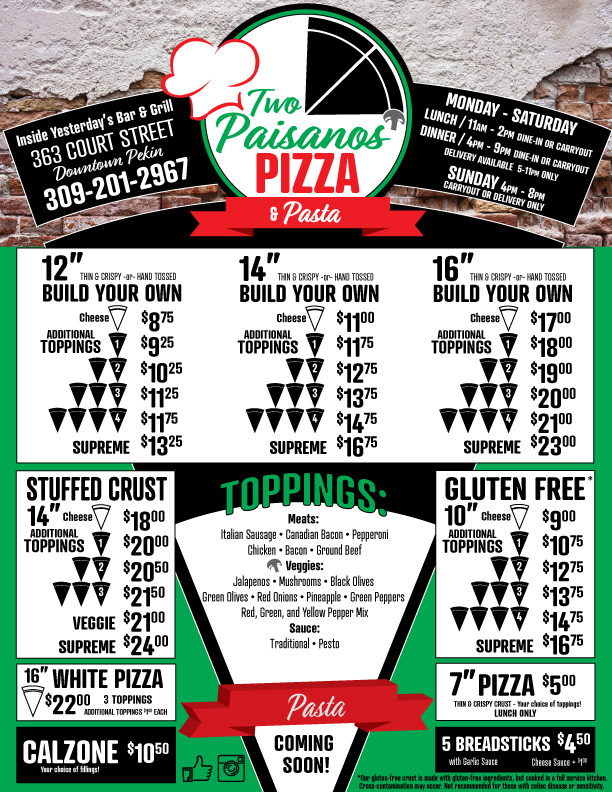 If you’re in the mood for a hearty meal with a relaxed vibe, the Two P’S Pizza & Pub Menu is the place to be. Located at 930 S 2nd St in Pekin, IL, this spot offers a delicious range of pizza, pub-style eats, and refreshing drinks that will keep you coming back for more. Whether you’re here for a casual lunch, dinner with friends, or just a cold beer, their menu has something for everyone.